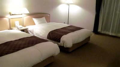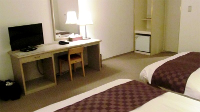 ![]() 308号室に入ると暖房が利き過ぎ!急いで窓を開け、新鮮な勝浦の空気を取り込む。 部屋はツインで、ビジネスホテルではとても広い(値段からして)部屋でシンプル(省けるものは置かない?) |