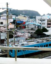 ![]() 部屋から JR紀伊本線「紀伊勝浦駅」 「部屋からベランダには出ないでください」の張り紙に?ベランダへの硝子戸をあけたら、どの部屋にも行けるぞ? |