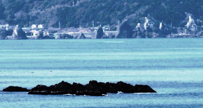 ![]() 展望台から海からの『橋杭岩』を望遠でとらえた |