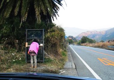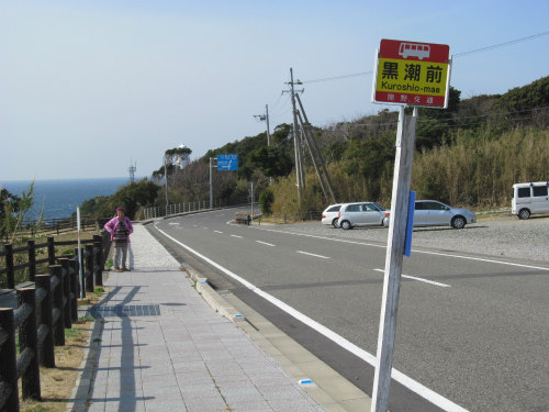 ![]() 黒潮前のバス停近くで私の車を待つ(300m離れたPへ) |