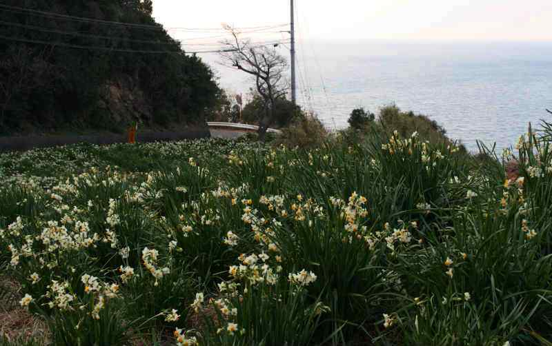 ![]() 水仙は、灯台付近はもとより、大島一円に広がって分布。 |