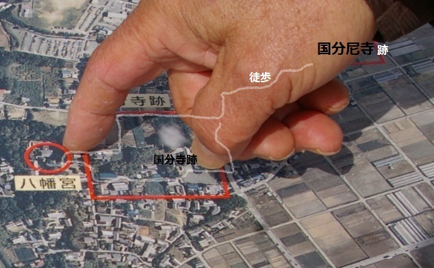![]() まだ調査が進まない国分寺跡敷地から八幡宮へ |