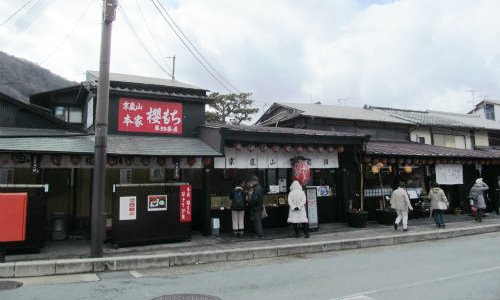 ![]() 4カ所目・・嵐山の散策で・・・有名な「桜餅」です |