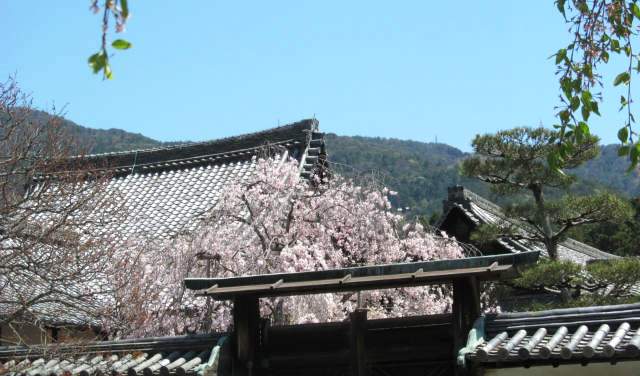 ![]() 庭の撮影は禁止なので・・外から枝垂れ桜をパチリ |