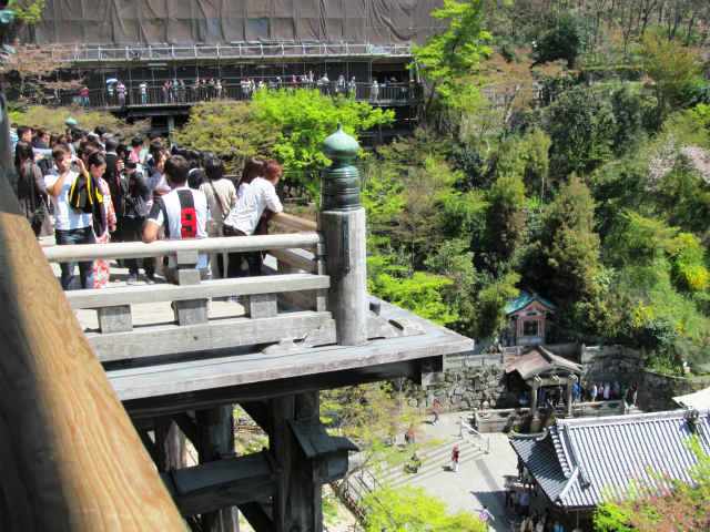 ![]() 清水寺の舞台から音羽の滝が右下に |