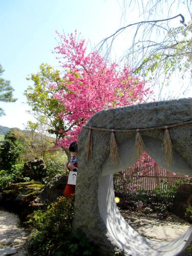 ![]() 清水には『百福くぐり』がありました。 くぐるだけで福に恵まれる便利なリングです。 満開の花は菊桃 |