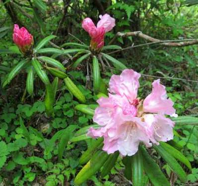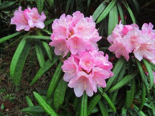 ![]() シャクナゲ(石楠花)は、ヤマツツジの仲間でツツジ属に分類される。よく見ると花はツツジそのものですね! |