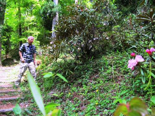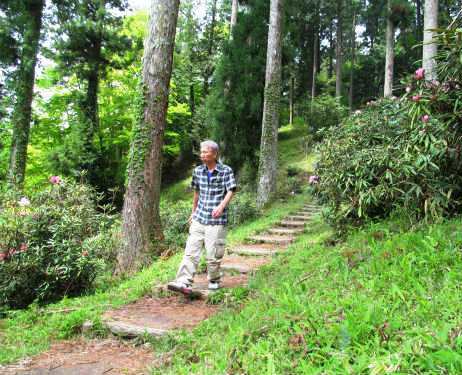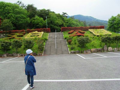 ![]() 道の駅で教えられた大井平公園に咲くシャクナゲを見に来たが、階段を見るなり「ひざを痛めたMasamiはパス!」 |