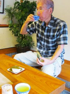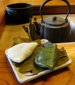 ![]() 別腹で試食のカステーラと柏餅を食べる |