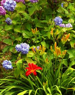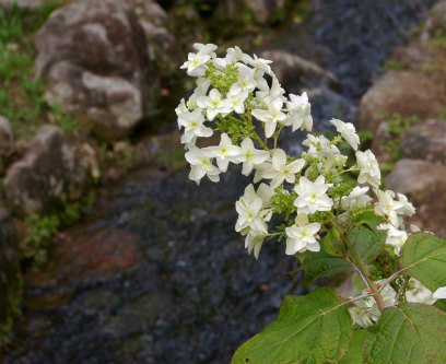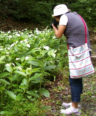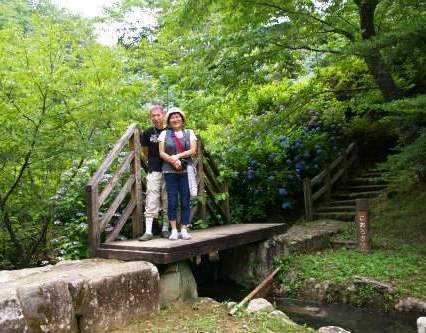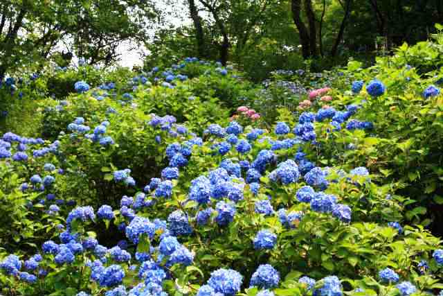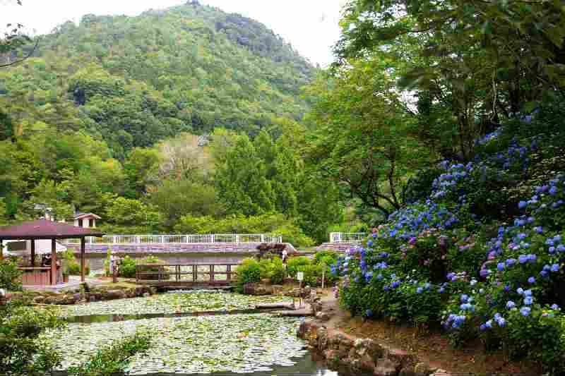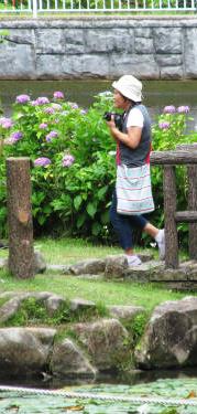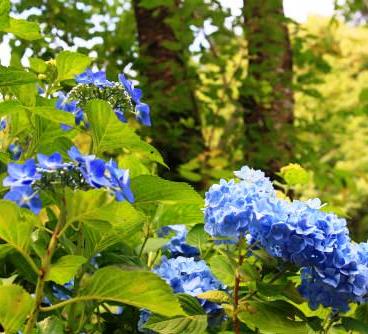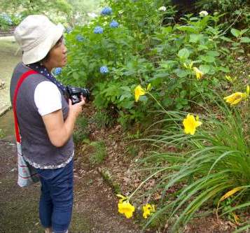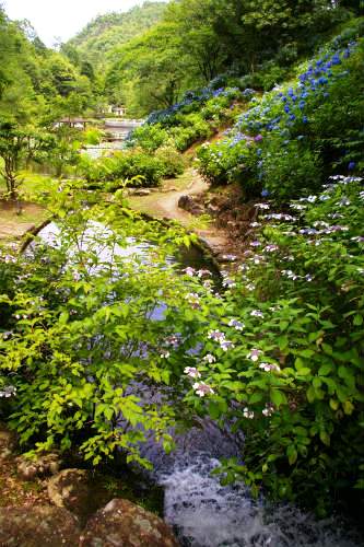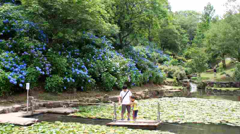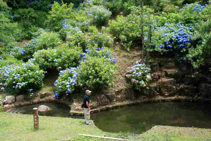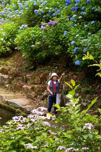 ![]() 斜面一杯に咲いたアジサイを眺めながらアジサイ池へ |