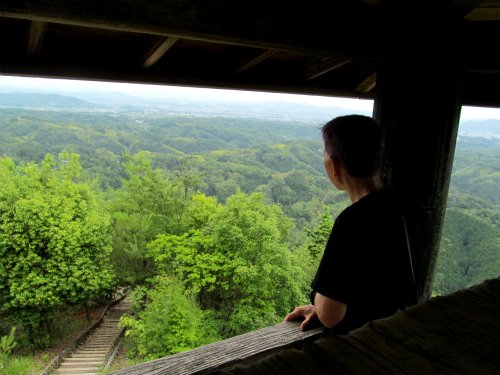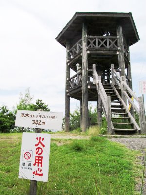 ![]() 高木山山頂 342m 展望台に登る(無料の双眼鏡が設置) |