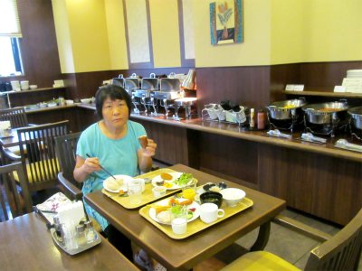 ![]() 10F部屋のカーテンを開けると昨夜の雨は上り、谷間を朝靄が立ち上って行く。 朝食バイキングは充実! |