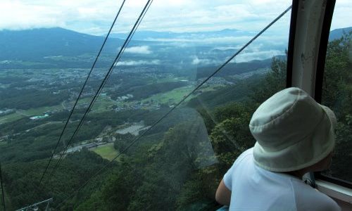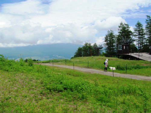![]() ゴンドラ山麓駅の標高1050mから山頂駅1780mまで10分で到着 八ヶ岳連峰は雲に隠れる |