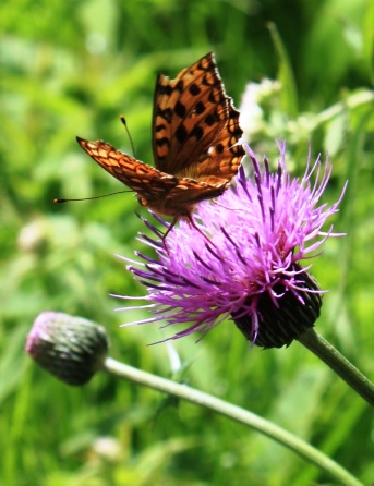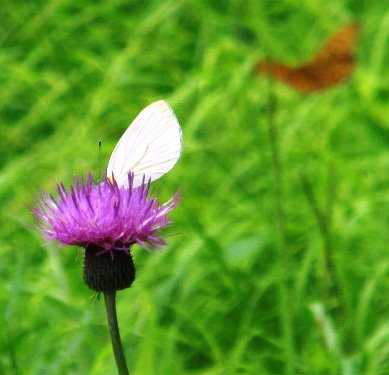 ![]() お花畑へ向かう・・・ノアザミの花にモンシロチョウ |