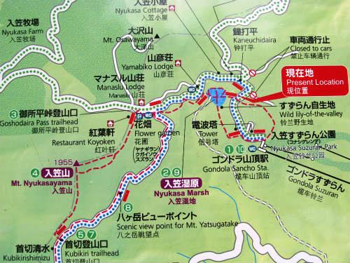 ![]() 入笠湿原>山彦荘が見える>案内板>10分>花畑・入笠山登山口 |