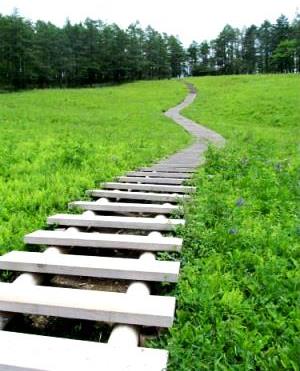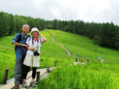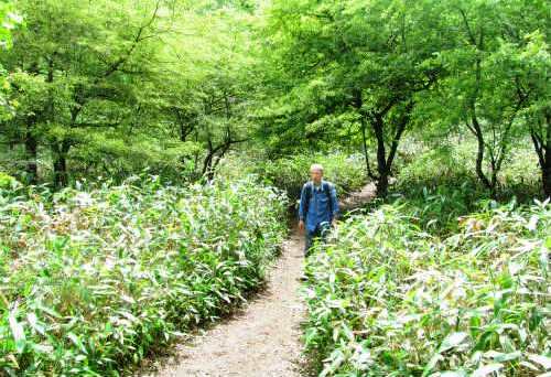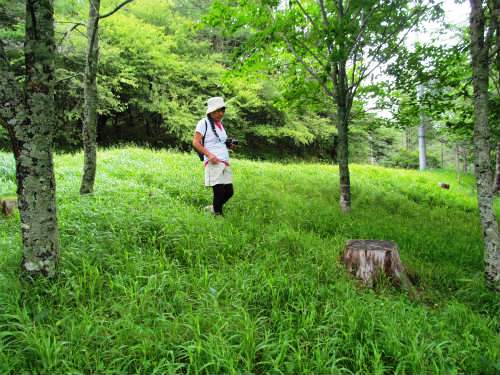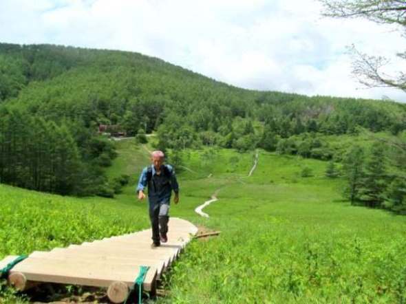 ![]() 入笠湿原に戻り、木道を登り詰めることにした。 スズランが一輪でも咲いていないか探したが無理でした。 |