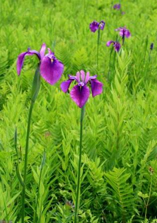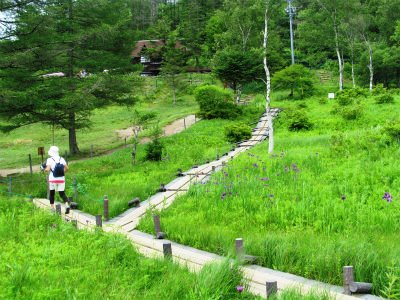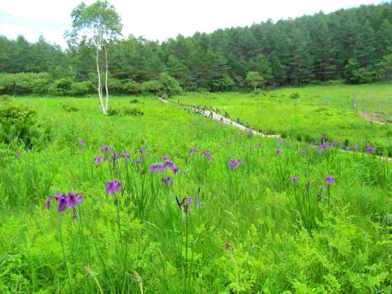 ![]() ノハナショウブが咲く『入笠湿原』 さまざまな高山植物が足元に見えます(6月にはスズランの群生が) |