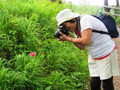 ![]() お花畑にたどり着くと霧が降りてきた。登るつもりでいたMasamiは諦めて戻ることにして分かれる。 このお花畑を登り詰め登ればハイキングコースなのかもしれません。 |