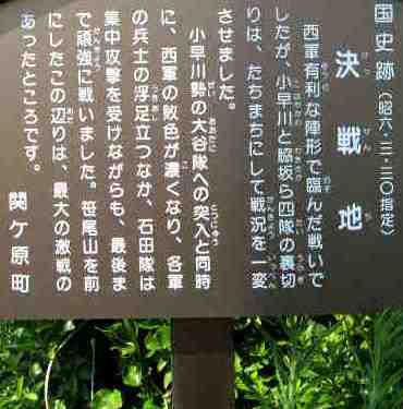 ![]() 石田三成隊が布陣した笹尾山から |