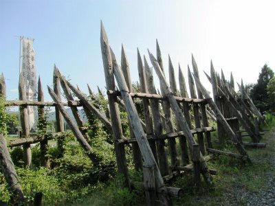 ![]() 矢来(馬防柵)で笹尾山を守る |