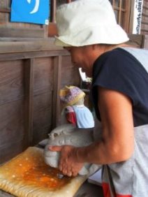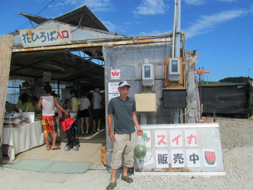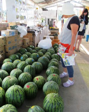 ![]() スイカは1kg100円>5.5kg=¥550ですがMasamiが500g値切りました。 |
