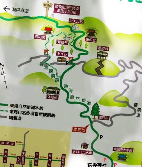 ![]() ![]() この分岐で迷う 【←猿投神社1時間*東の宮30分→】 どちらから行っても行けるが・・・右に行くことにした |