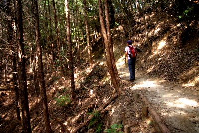 ![]() なだらかな木立の登山道はとても気持ちが良い(息を整える時です)整備されていますが登山靴が良いでしょう。 |