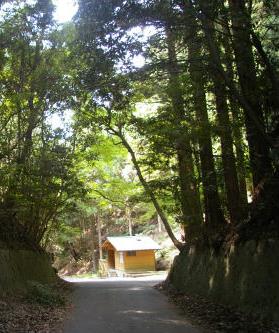 ![]() ここに出てきた(車の走る舗装道路) 降りてきて左に曲がると東の宮の鳥居が直ぐ見える |