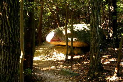 ![]() どちらに行けば?疲れて登りたくないので左に歩く(正解です。合流しますが!) カエル石?落書き? |