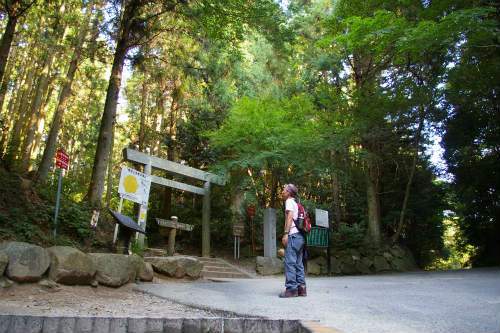 ![]() 左に曲がり>東の宮の鳥居にたどり着く・トイレとPがあるから山頂に登るだけならここから1時間 |