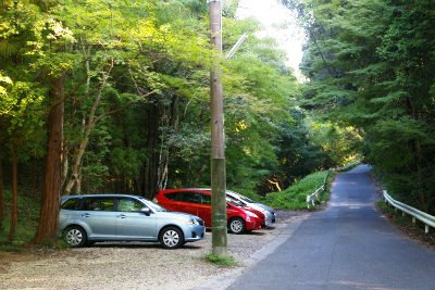 ![]() 「水神」と刻まれた石碑と地蔵 > トロミル水車 > 舗装道路を歩くと所々にPスペースがあった。 |