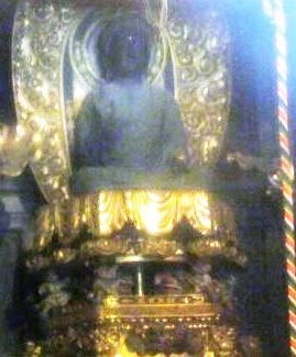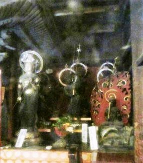 ![]() 木造観音菩薩の両脇には日光・月光菩薩立像・・・そして背後には12神像が立ち並ぶ 右端には不動明王坐像 |