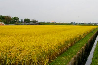 ![]() 刈り入れを待つたわわに実った稲穂 |