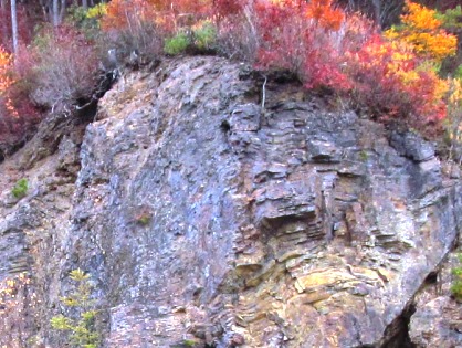 『古生層チャートの大しゅう曲』 三億年前は海底だった? 大きな力が地層の側方からかかった際の、地層が曲がりくねるように変形する現象のこと。