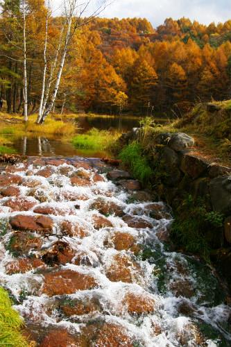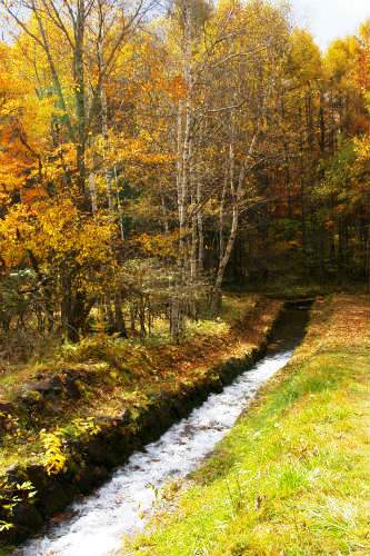 ![]() 白樺とカラマツの紅葉 |