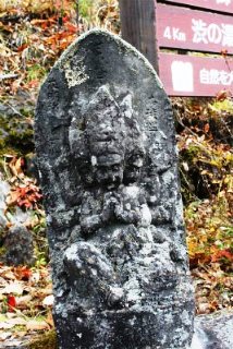 ![]() 入口の空き地に車をとめる。利用者以外は徒歩で、ここから200mほど下ると明治温泉旅館です。 ↑馬頭観音 |