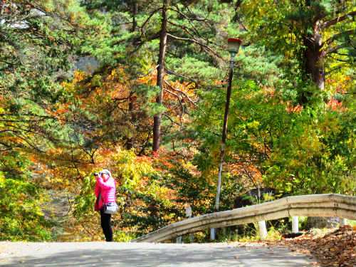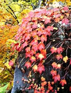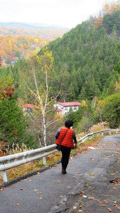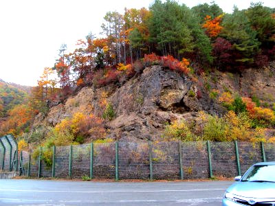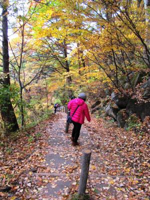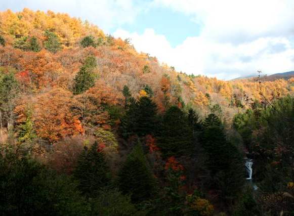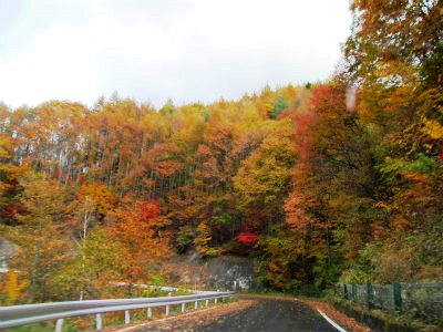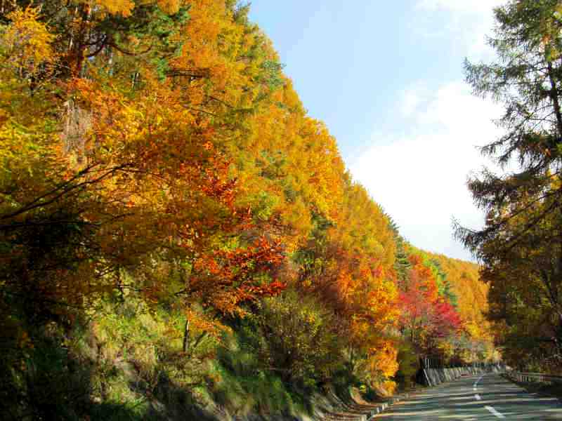 ![]() 奥蓼科温泉郷方面に向かう紅葉も見事です |