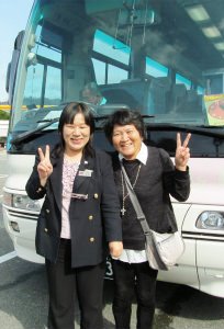 ![]() ![]() ((加西サービスエリア)西三バスで三人のグループと添乗員の広瀬さん! |