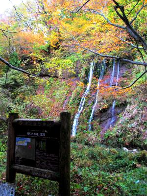 ![]() 扇ノ山から流れ出す袋川にかかる落差40mの滝で原生林に囲まれた場所とあふれ出んばかりの水量が落ちる姿は迫力満点 毎年6月第1土曜日に「滝開き祭」が開催され、壮大な滝をバックにこの地方の伝統芸能である「因幡の傘踊り」や神事が行われる。 |
