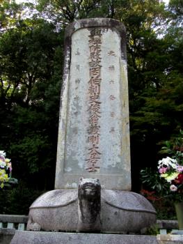 ![]() 「亀趺円頭」の墓碑 亀趺(きふ)という異様な顔形をした台石に円頭扁平な墓碑を建てた。 |