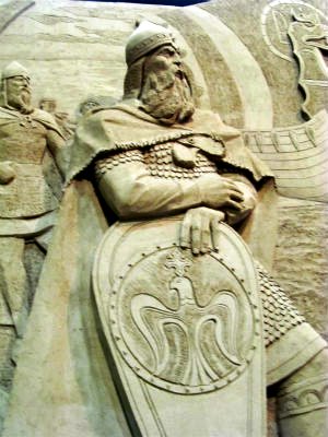 ![]() 右) 998年:キリスト教の受容 ウラジミール一世が人々をドニエプル川に浸らせ、洗礼をしているシーン |