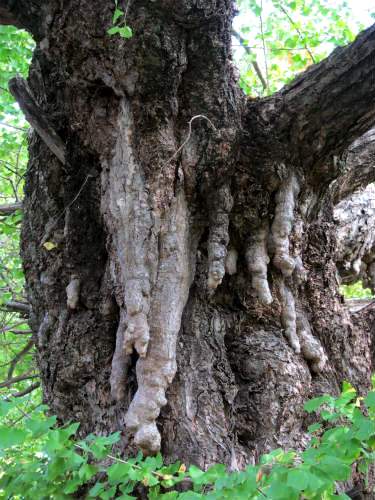 ![]() 古木に見られる乳根が何か異様にへばりついていました(津島神社のイチョウの木にはもっと見事な乳根が見られます) |