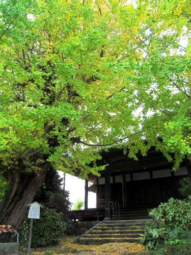 ![]() 本堂前のイチョウはまだ黄葉には程遠いです |