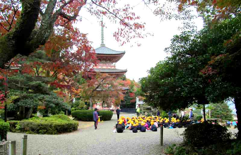![]() 三重の塔前には清掃に訪れた近くの小学生です |