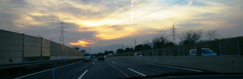 ![]() 鈴鹿山系に陽が落ちた東名阪を西に向かう |