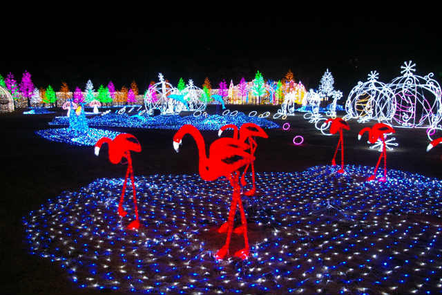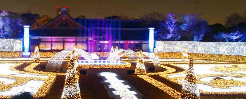![]() バロック式庭園をモチーフにしたイルミネーションがクラシック音楽に合わせて壮麗な光のショー「ジュエルイルミネーション」 |