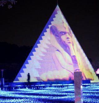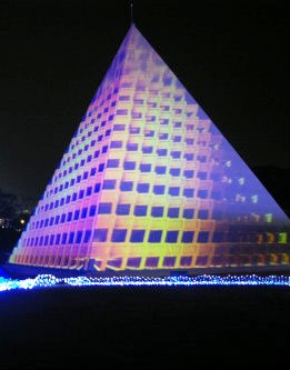 ![]() ![]() ピラミッドがそびえ、一面に広がる光の波が打ち寄せる「光のビッグブルー」 |