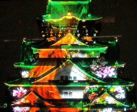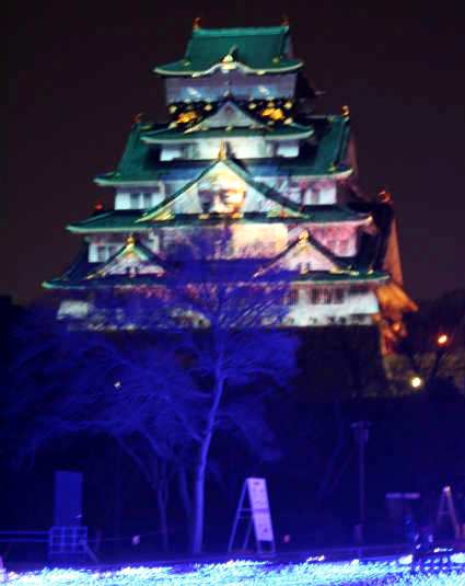 ![]() ハウステンボス「光の王国」の技術を結集し、秀吉が大阪城に映し出された。 |