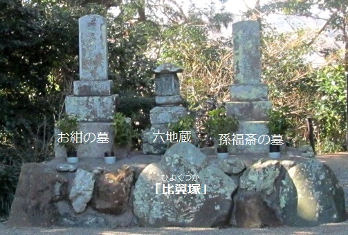 ![]() 同行者に「油屋騒動」の経緯は、男女三角関係だと説明しましたが、良く調べたら全く違っていました。すいません! 比翼塚(ひよくづか)は、愛し合って死んだ男女や心中した男女を一緒に葬った塚。 後に演目を演じていた歌舞伎役者三代目阪東彦三郎により建立され、死後添い遂げられたのでしょうか! |