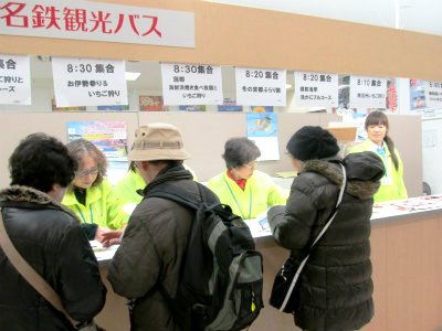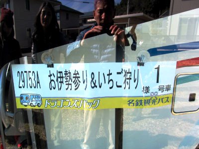 8:30集合名鉄バスセンター4F>イチゴ狩り>伊勢神宮>海産物買い物>亀山ラーメン夕食>18:10名古屋